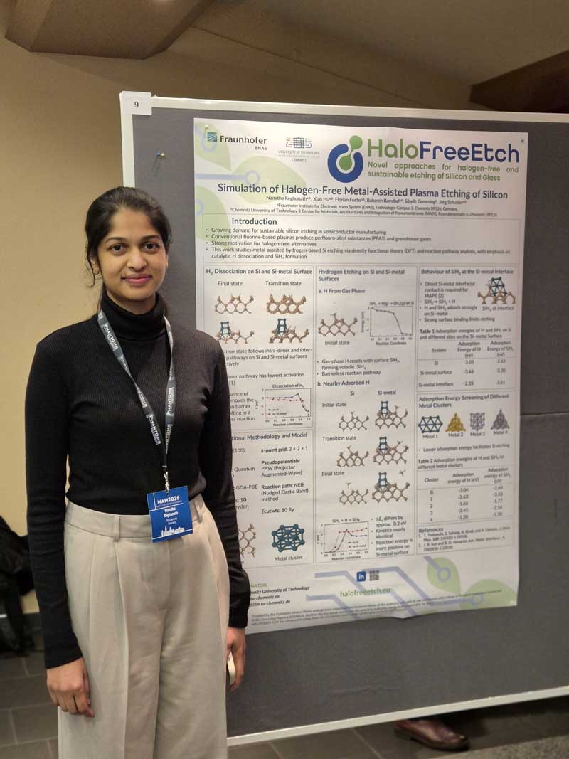 We are pleased to announce that Namitha Reghunath successfully represented the project within the MAPE task during the MAM2026 – Materials for Advanced Metallization conference, held in Chemnitz, Germany, from 24 to 26 March 2026. During the event, Namitha presented the simulation results developed within the project, receiving great interest from the scientific community.